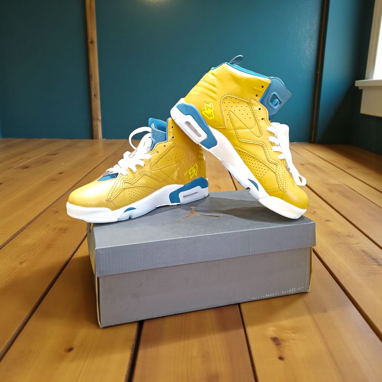 This sneaker is a hybrid model that incorporates design elements from three iconic Air Jordan models: the AJ6, AJ7, and AJ8, celebrating Michael Jordan’s first three-peat championship run.