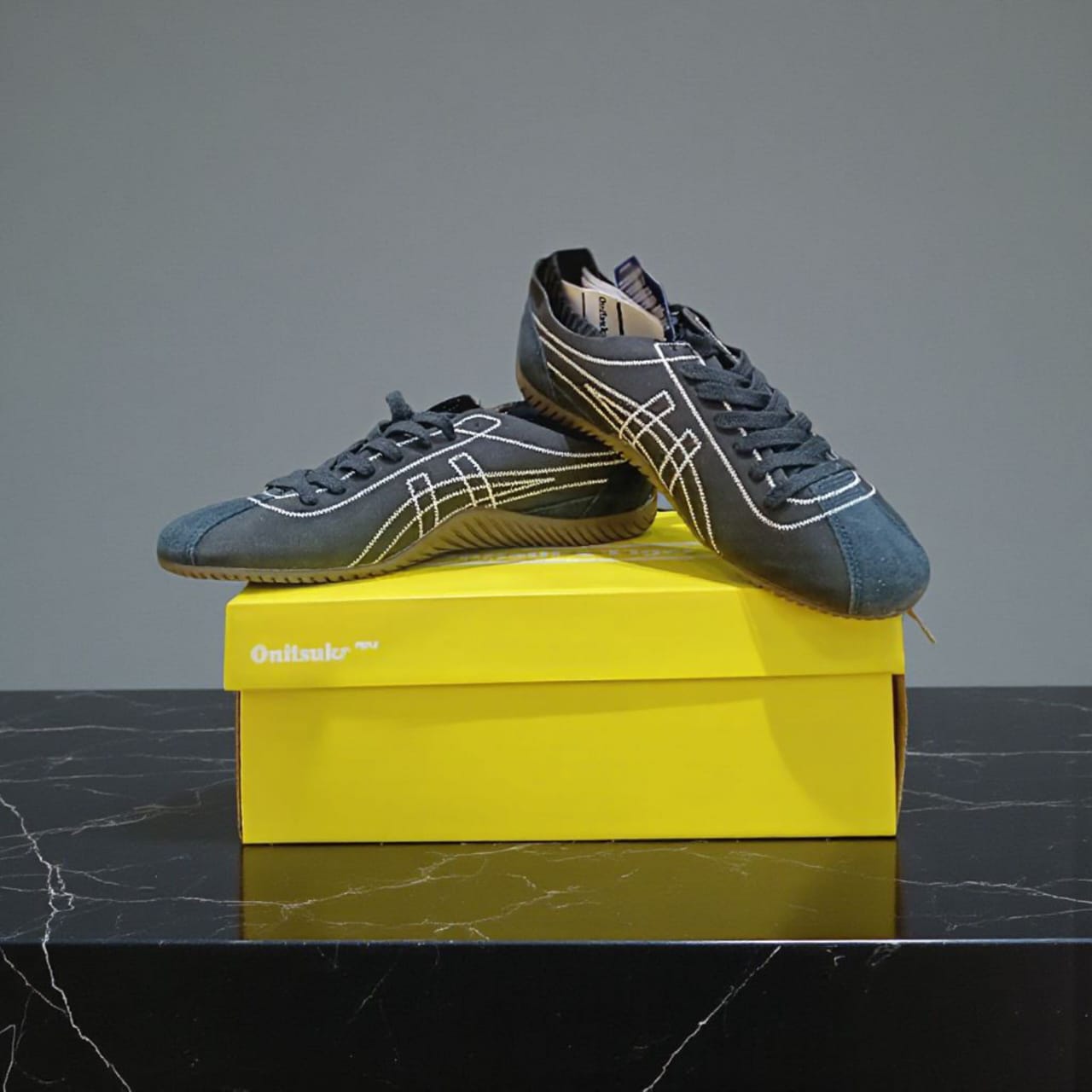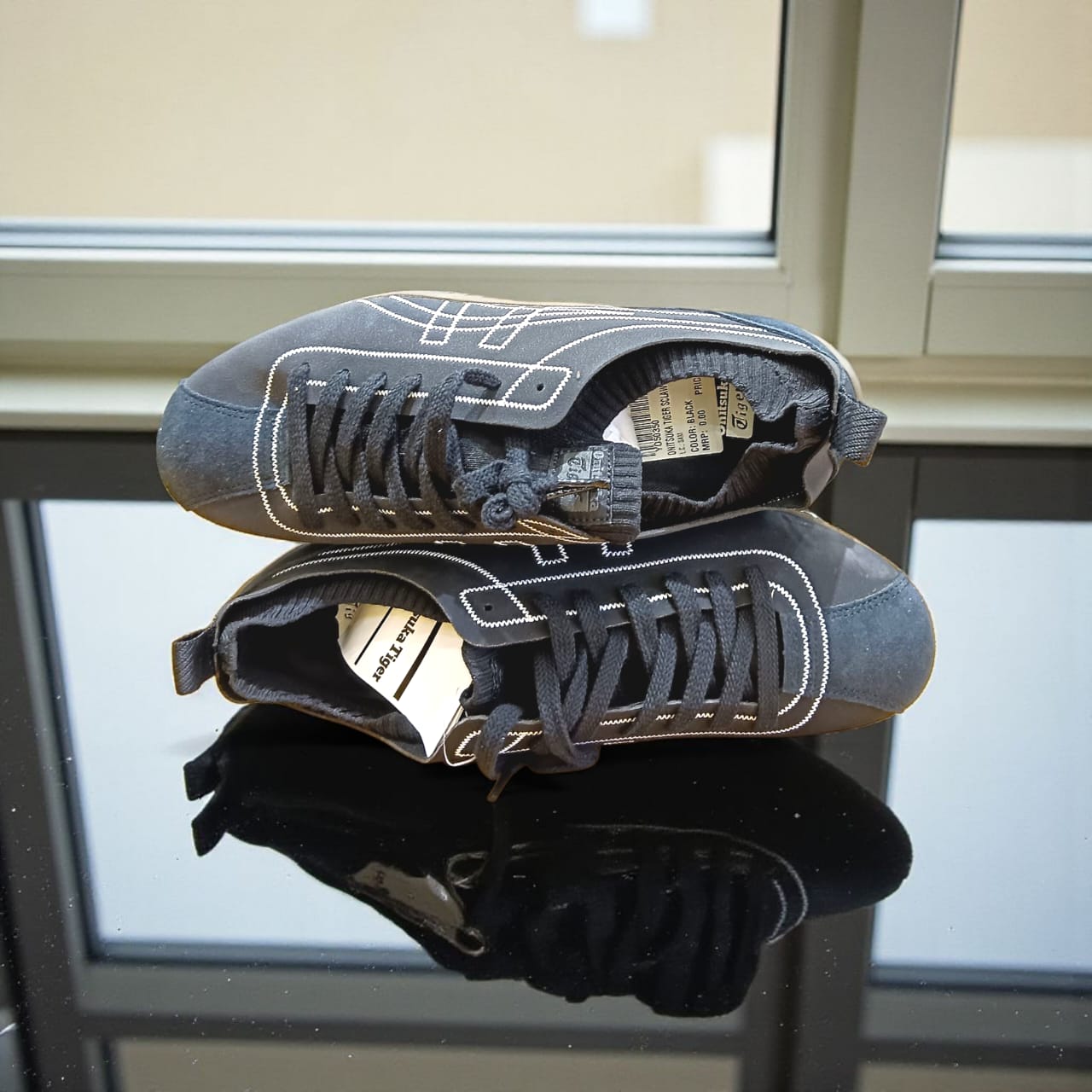 The product shown in the image is a black Onitsuka Tiger Sclaw shoe.