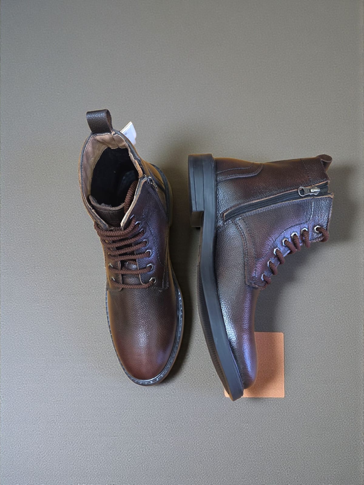 Step into timeless sophistication with these ZARA Brown Leather Boots. Crafted from premium genuine leather, they feature a sleek, polished finish that effortlessly combines modern style with classic appeal. The mid-calf design provides versatile wear — perfect for pairing with jeans, skirts, or tailored trousers.